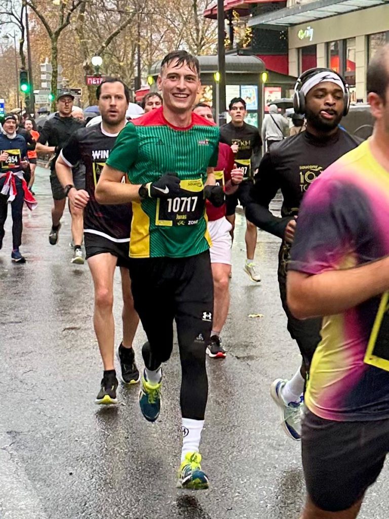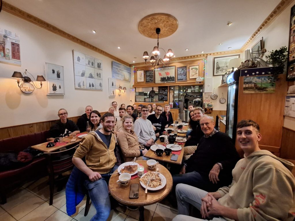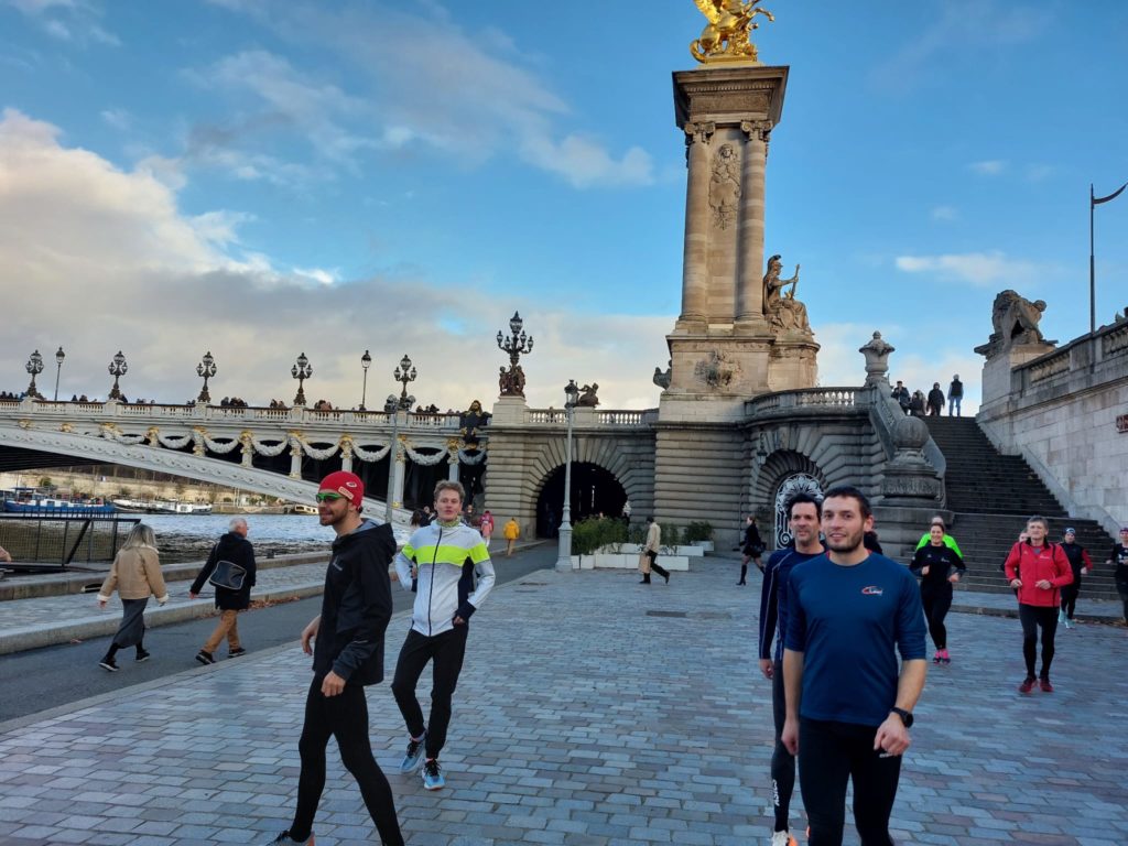 Am Sonntag war es dann so weit. Nach einem schnellen Frühstück in der Hotellobby machten wir uns auf den Weg zum Start. Draussen war es noch etwas dunkel und vor allem regnete es ordentlich. Zum Glück lag der Start nur 200 Meter vom Hotel entfernt, sodass man sogar während des Einlaufens nochmals kurz in der warmen Lobby Unterschlupf finden konnte. Dann ging es endlich los! Nicht alleine, sondern gemeinsam mit rund 10’000 Läuferinnen und Läufern aus Frankreich und der ganzen Welt. Die schnelle und flache Strecke führte vorbei am Eiffelturm, entlang der Seine und bei Les Invalides. Dank Beat und seinen zwei (etwas weniger motivierten) Helfern aus Zürich warteten im Ziel sogar trockene Kleider auf uns. Service deluxe, merci Beat! Am Nachmittag erkundeten wir zu Fuss und mit der Metro die Stadt. Besonders beeindruckend war der Besuch der frisch renovierten Notre-Dame, dazu kamen weitere Sehenswürdigkeiten im Stadtzentrum. Den Tag beendeten wir in einer Crêperie, die wir mit unserer Gruppe fast komplett für uns alleine hatten, damit war die Stimmung auch garantiert!