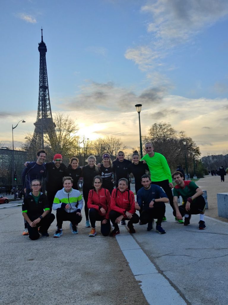 Die An- und Rückreise erfolgte entspannt mit dem TGV. Kaum angekommen, teilte sich die Gruppe auf. Die eine Hälfte nutzte den Samstagnachmittag für ein Footing, um die Beine nach der Zugfahrt zu lockern, inklusive Abholung der Startnummer auf dem Rückweg. Die andere Hälfte spazierte direkt zur Startnummernausgabe und staunte nicht schlecht, als klar wurde, dass diese praktisch direkt beim Eiffelturm lag. Den Abend liessen wir gemeinsam bei Pizza und Pasta gemütlich ganz in der Nähe unseres Hotels im 15. Arrondissement ausklingen.